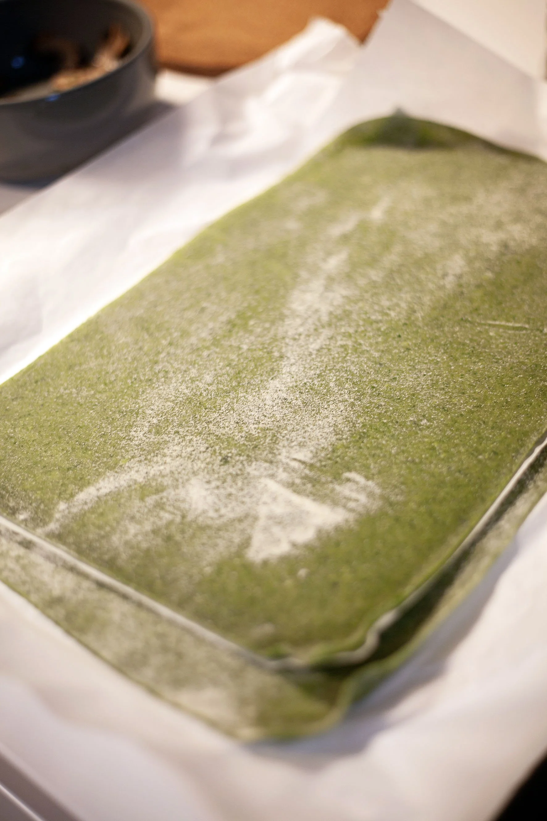 300 g lasagneplater (helst ferske, min versjon er med spinatpuré i deigen)